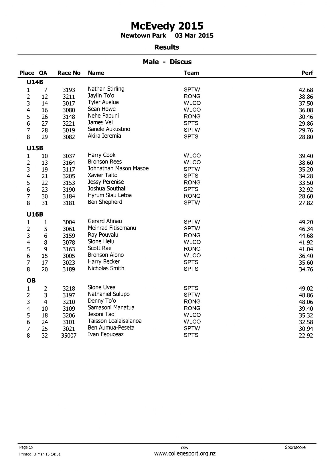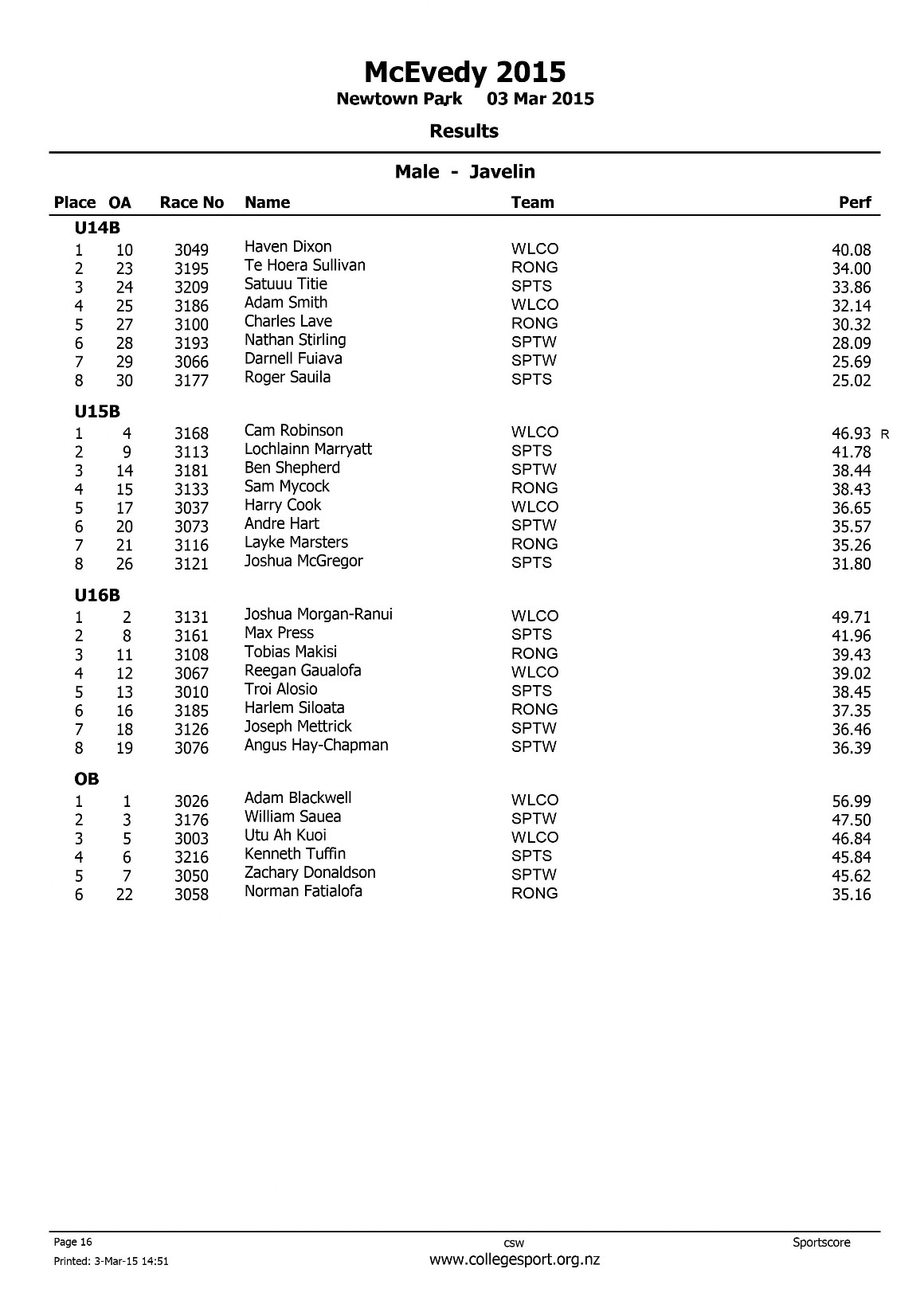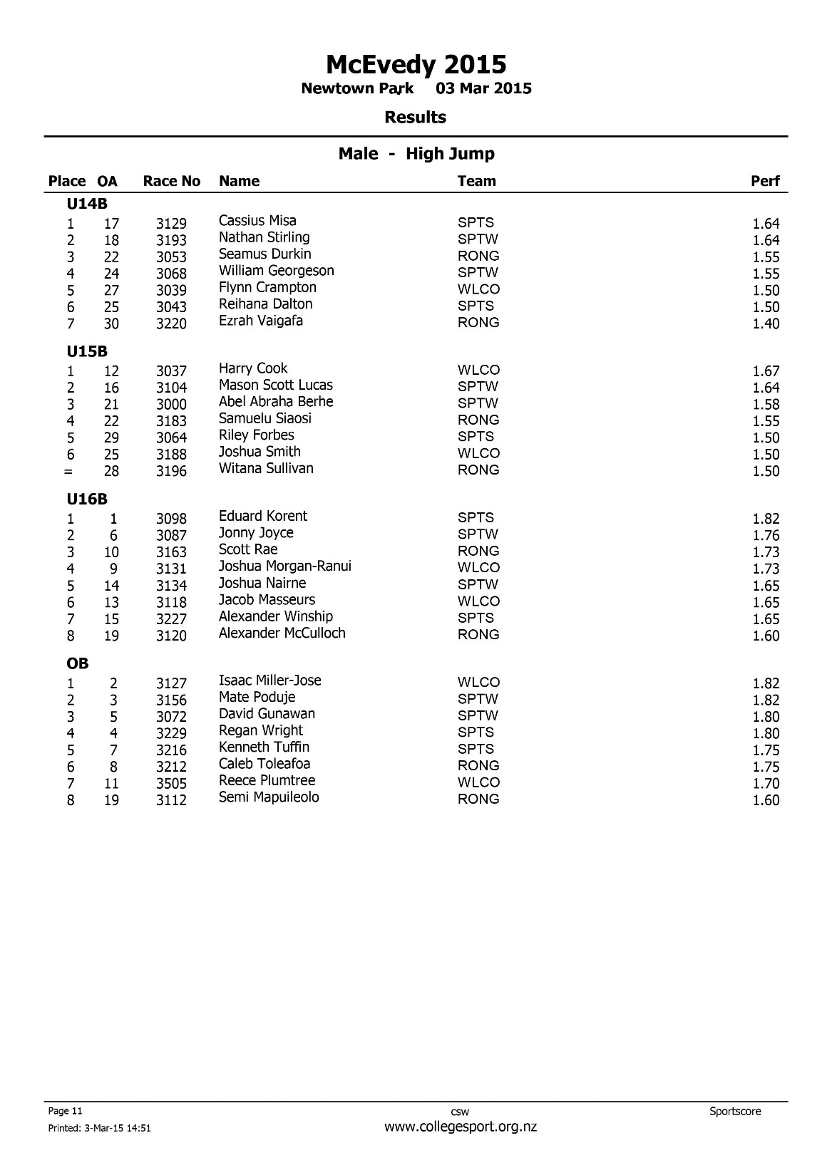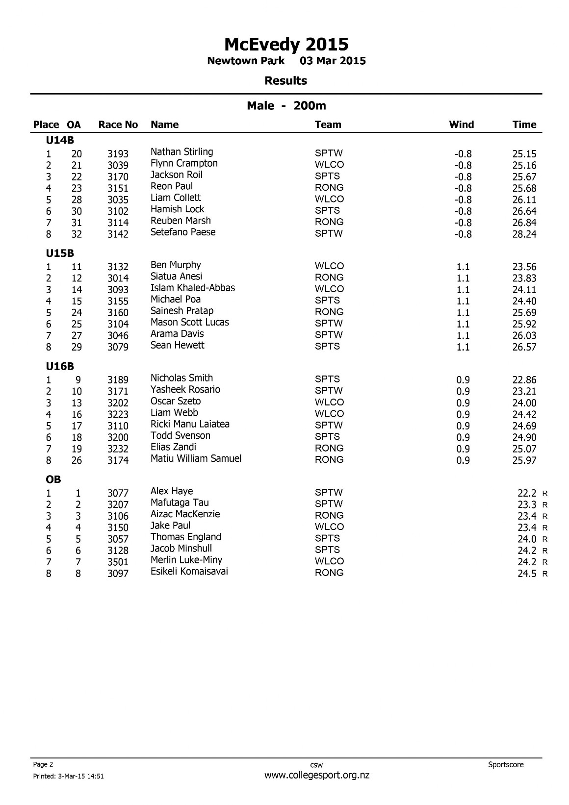 McEvedy Shield 2015 - Tuesday 3 March 2015 Newtown Park, Wellington | ||