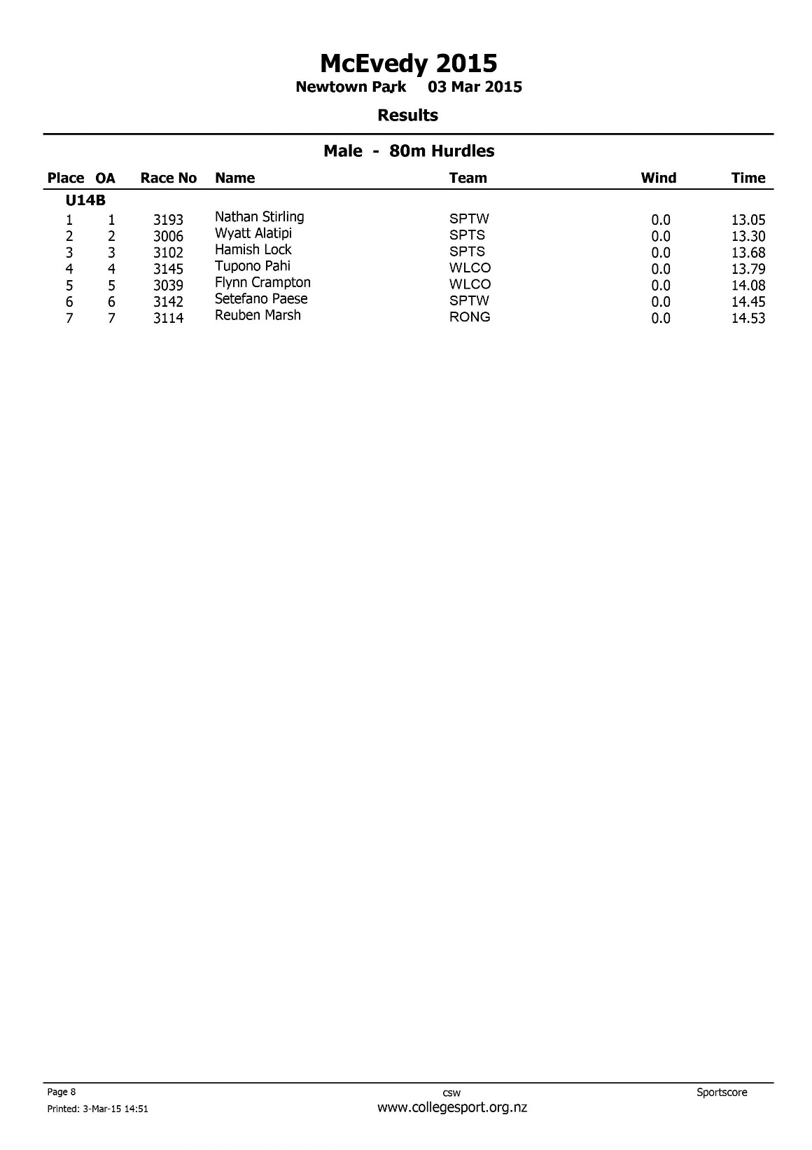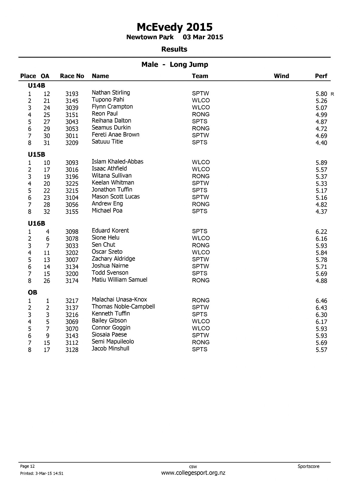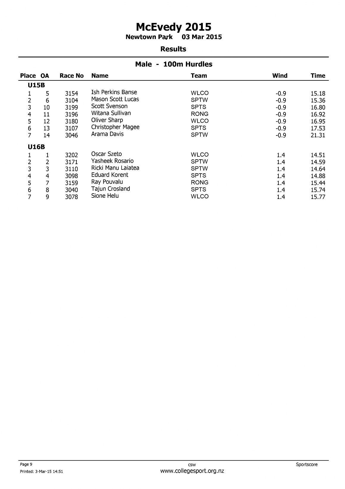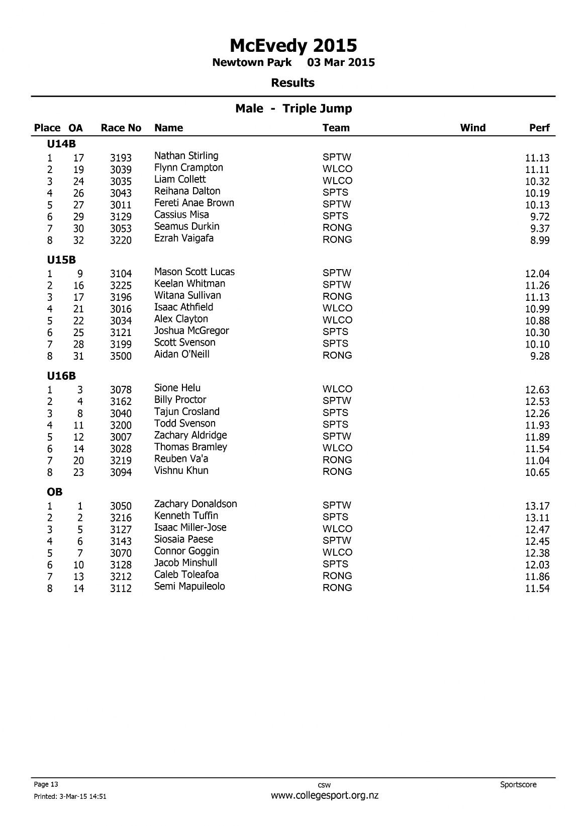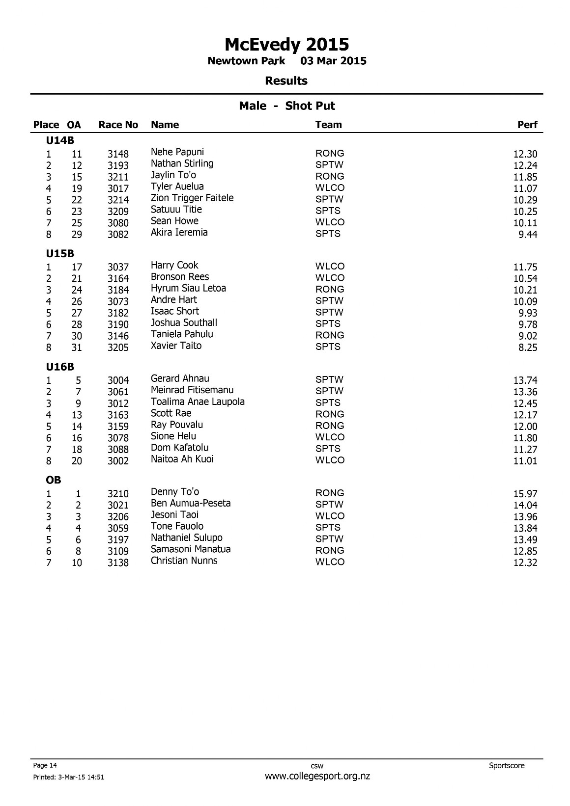 McEvedy Shield 2015 - Tuesday 3 March 2015 Newtown Park, Wellington | ||