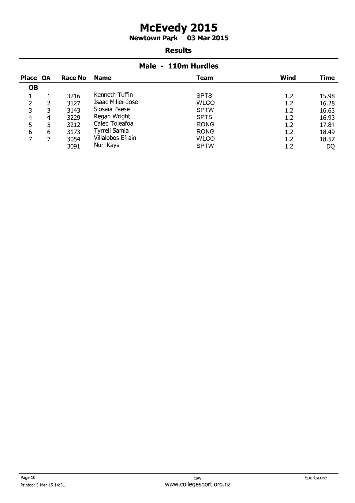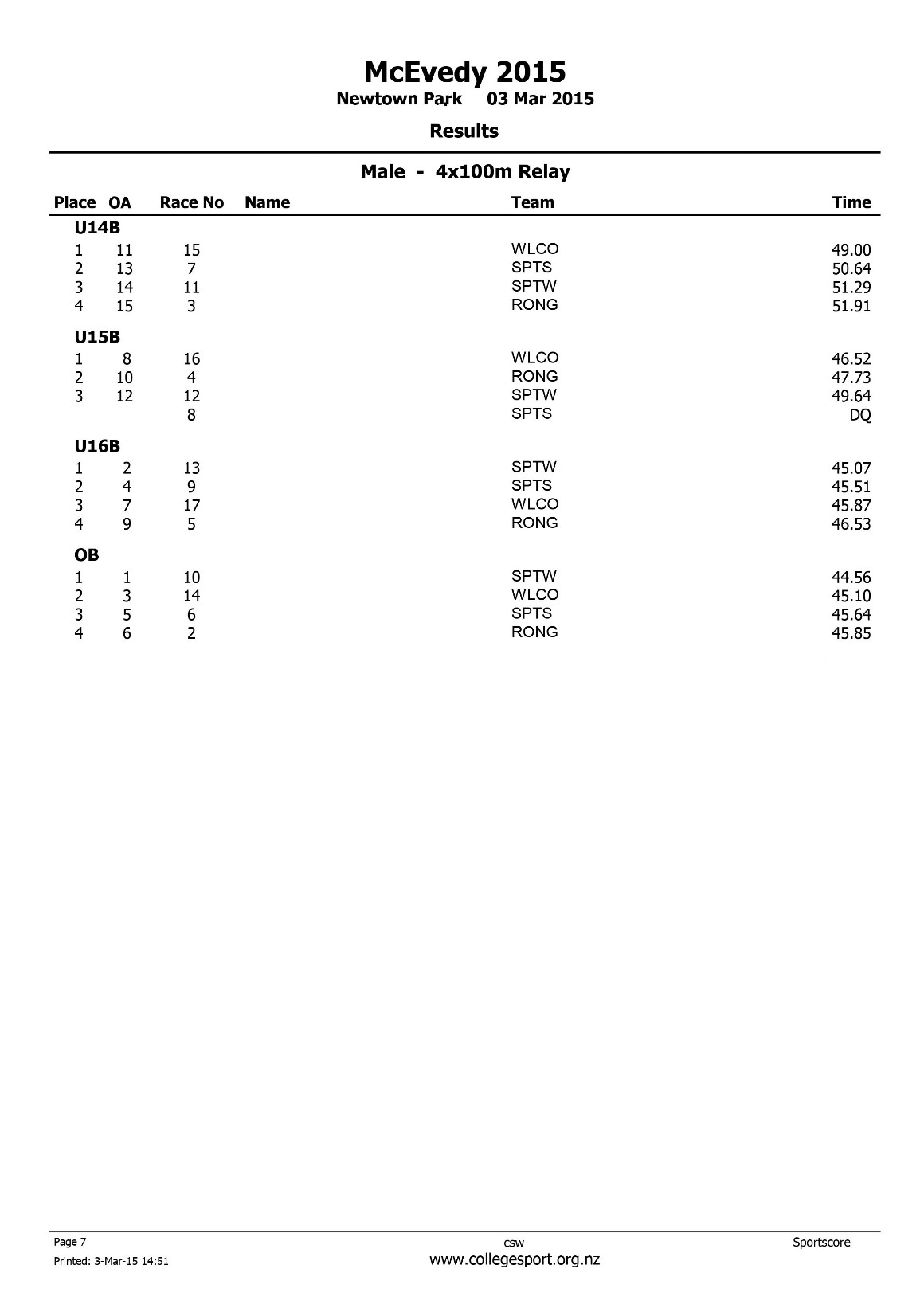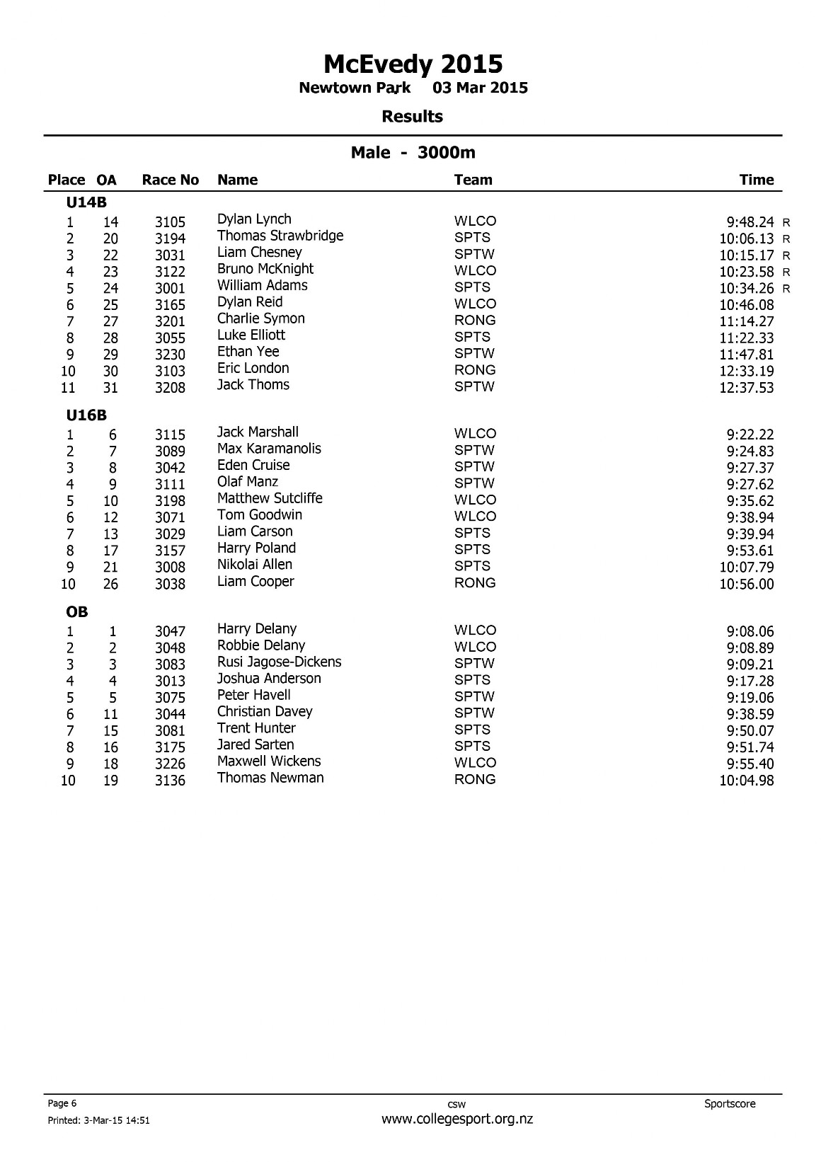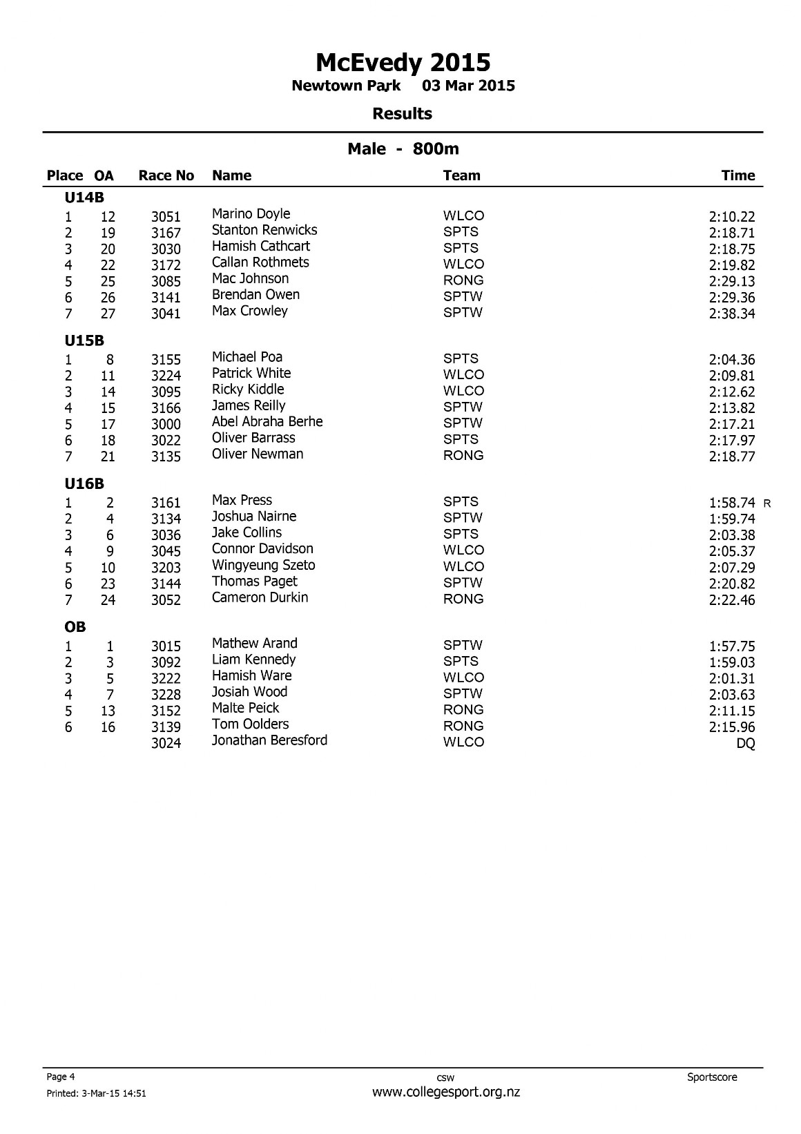McEvedy Shield 2015 - Tuesday 3 March 2015 Newtown Park, Wellington | ||