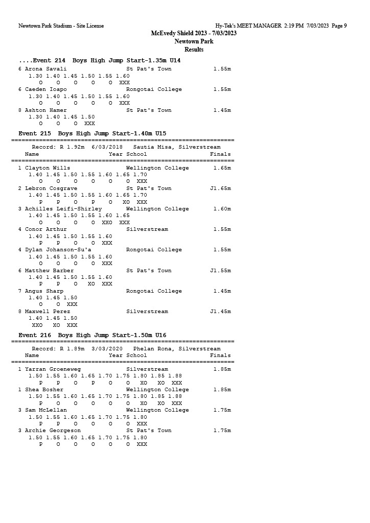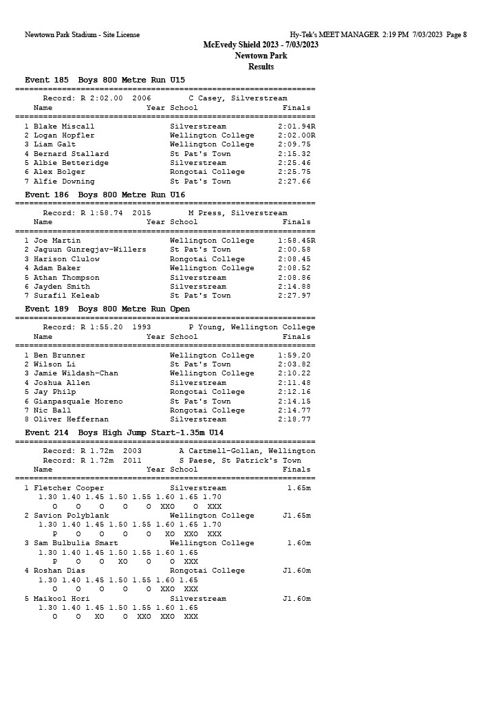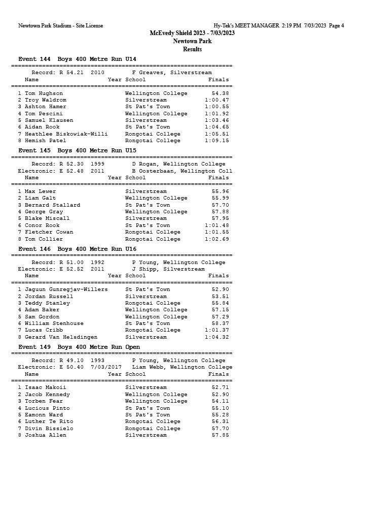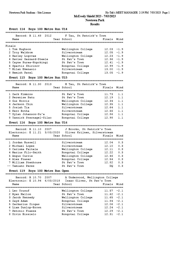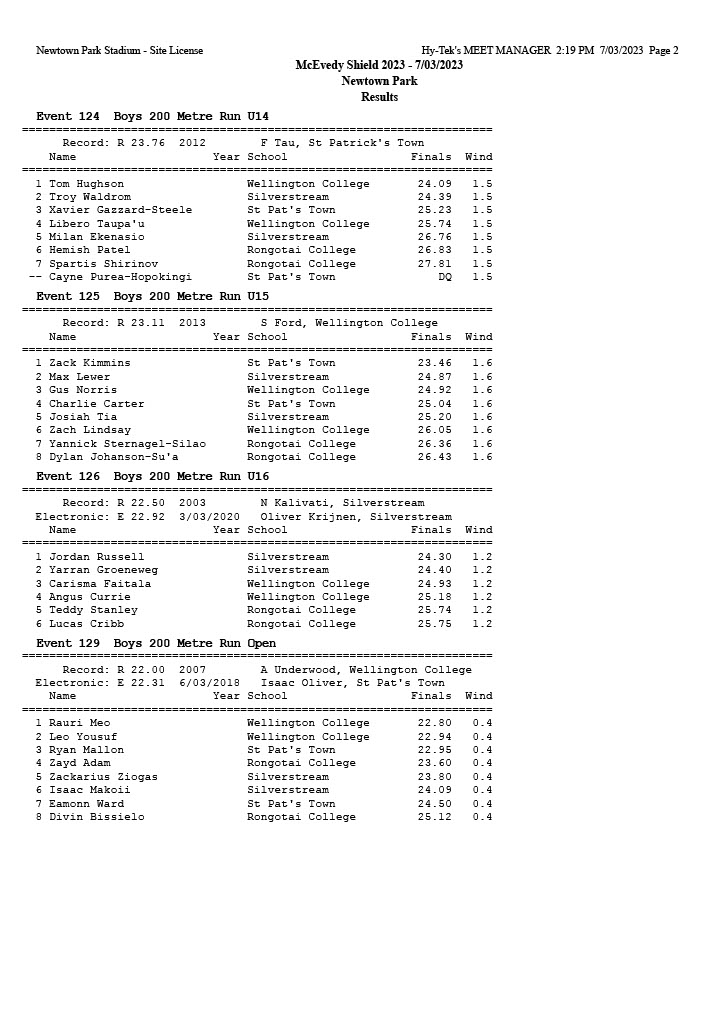 McEvedy Shield 2023 - Tuesday 7 March 2023 Newtown Park, Wellington | ||