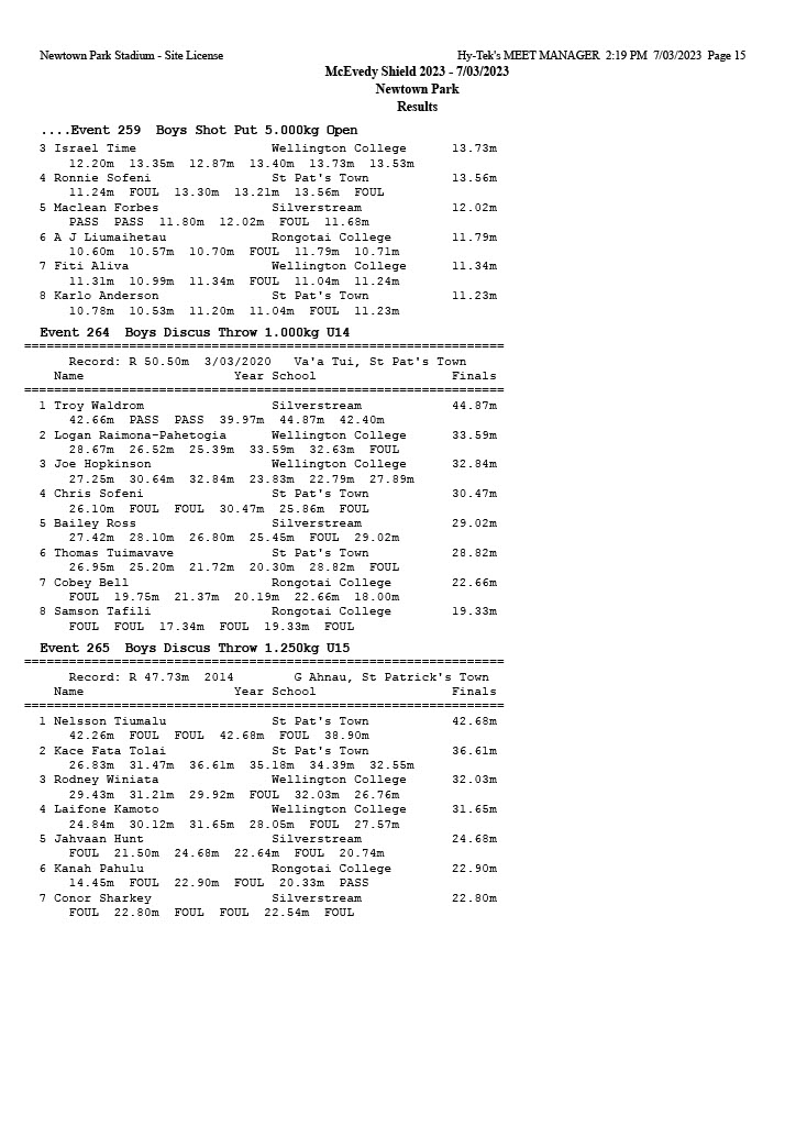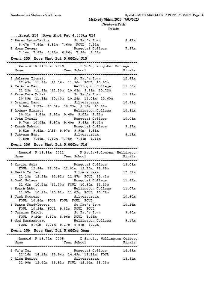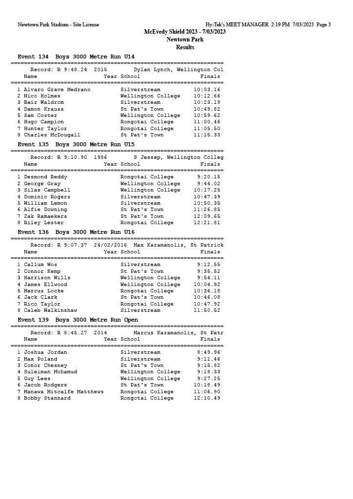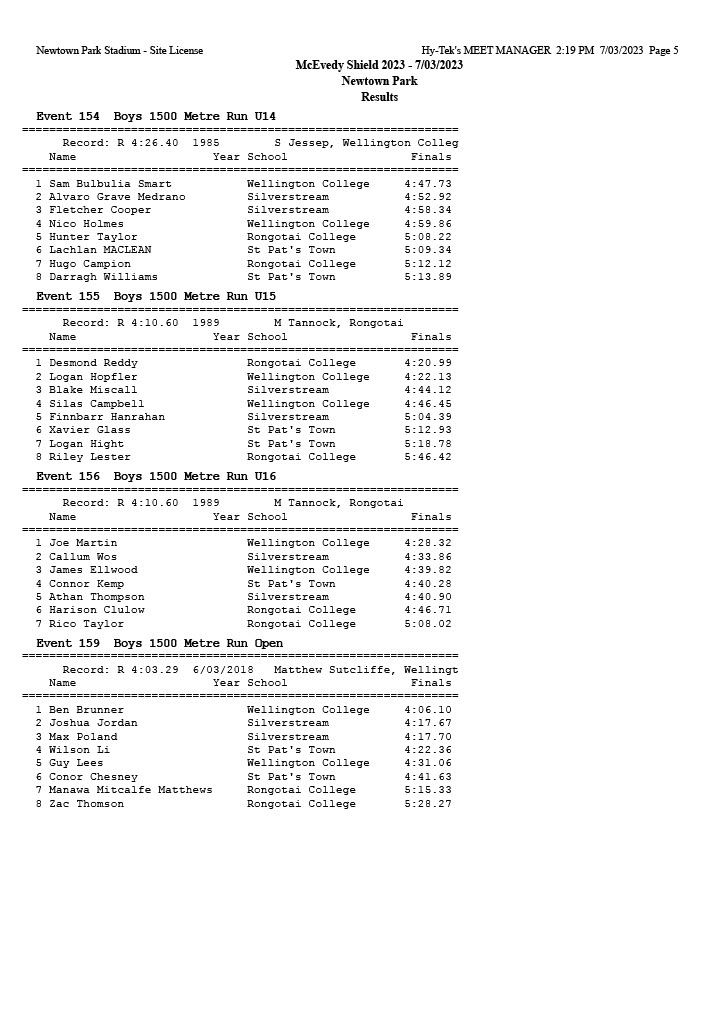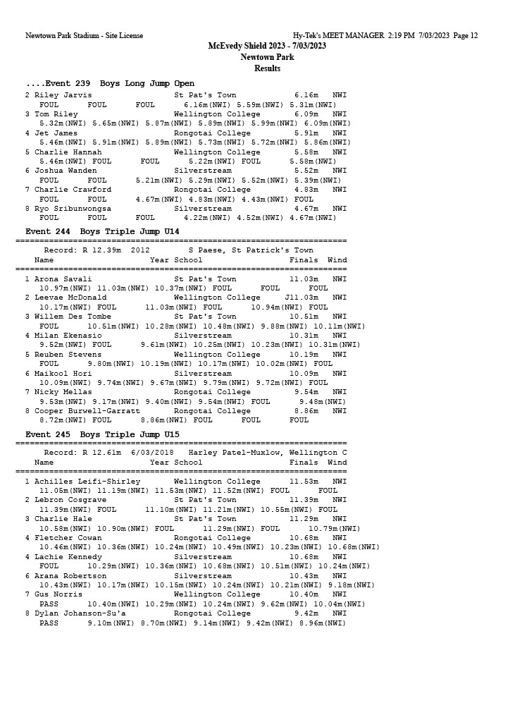 McEvedy Shield 2023 - Tuesday 7 March 2023 Newtown Park, Wellington | ||