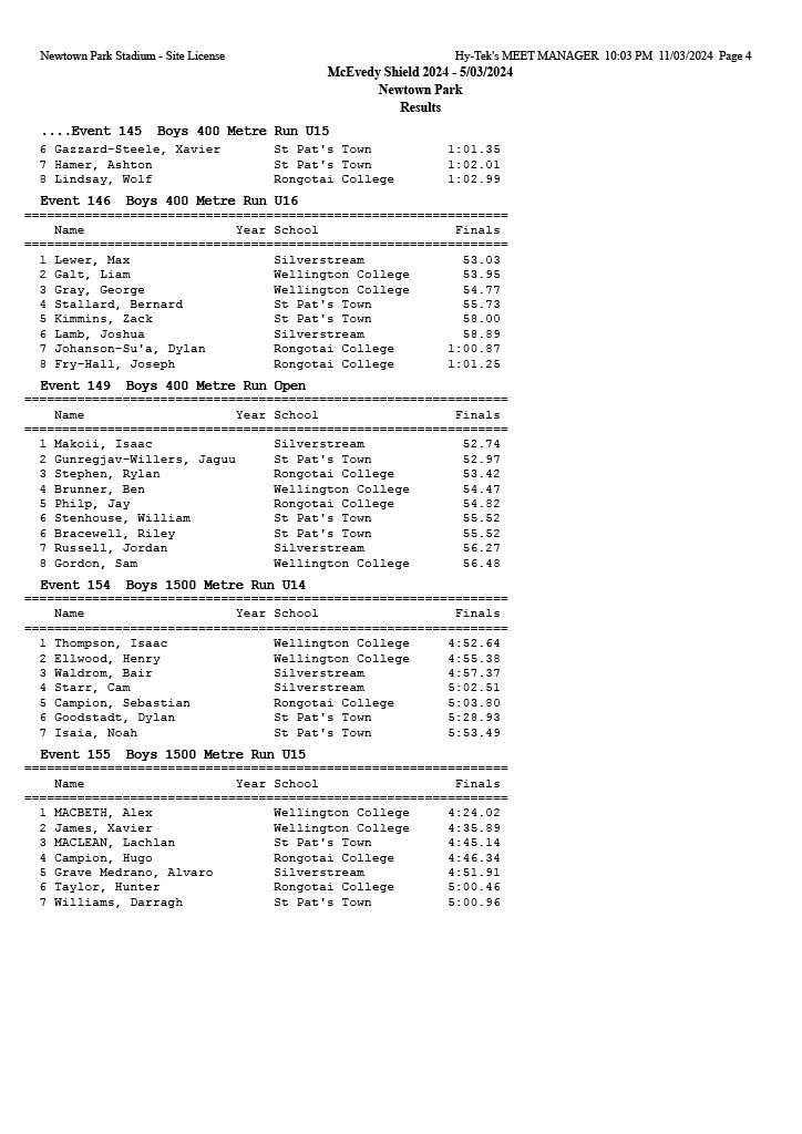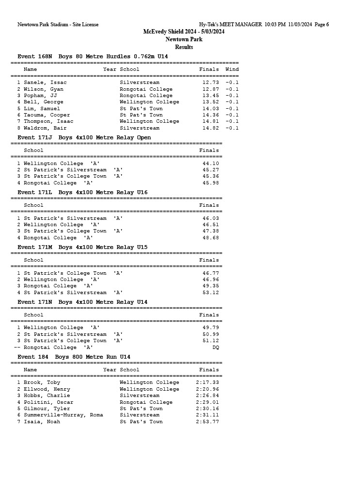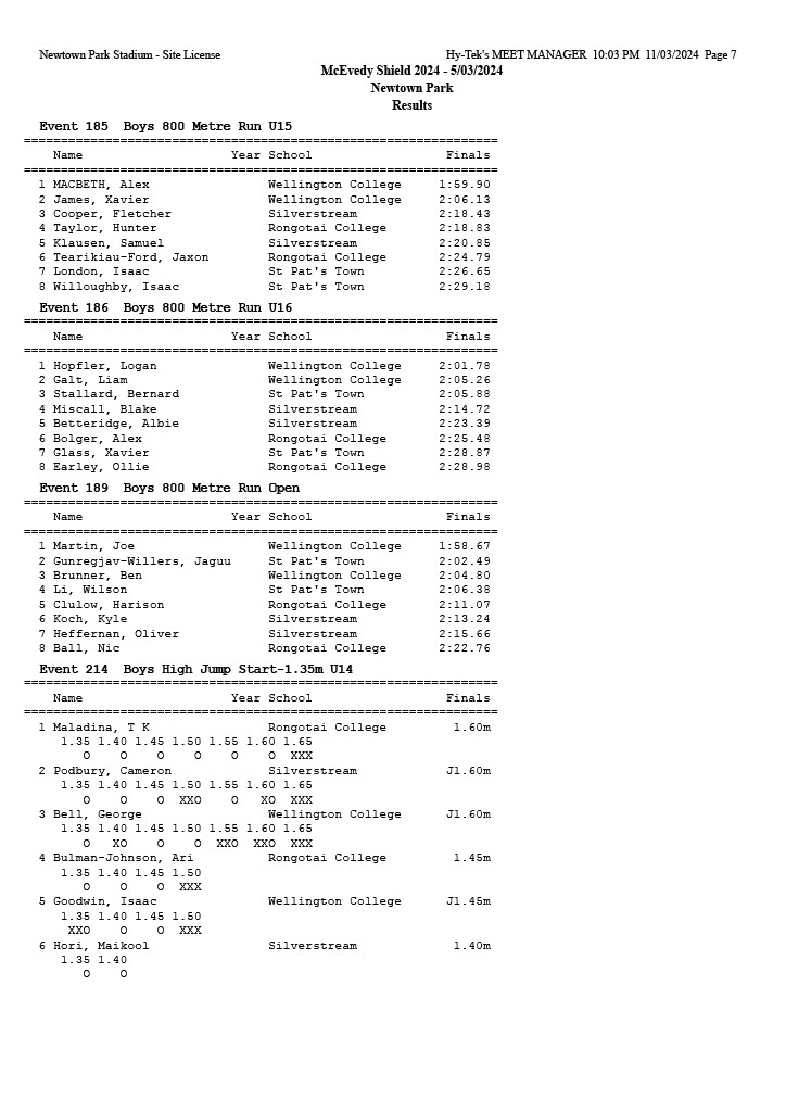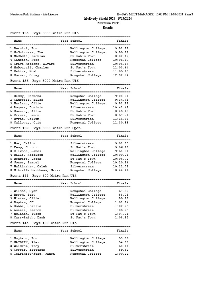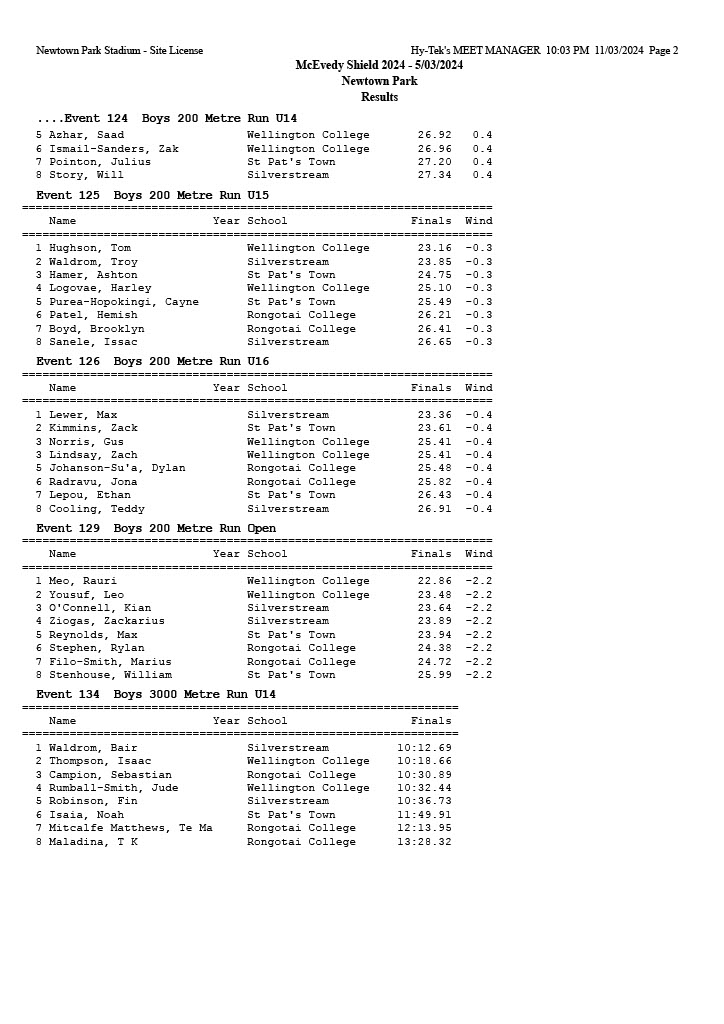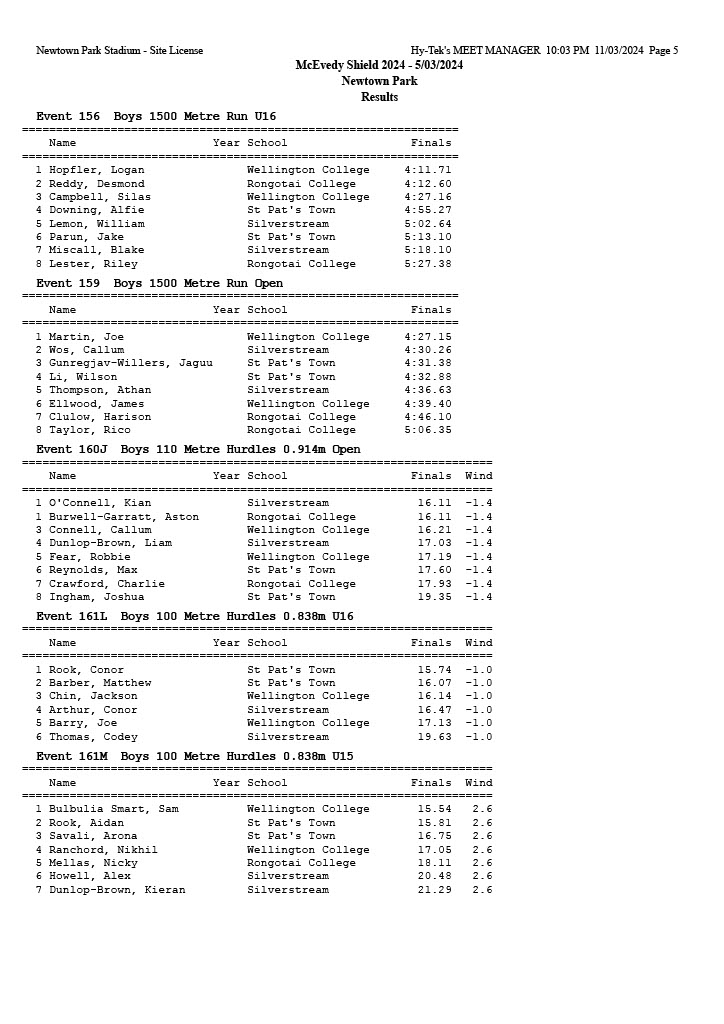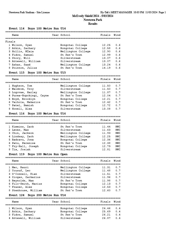 McEvedy Shield 2024 - Tuesday 5 March 2024 Newtown Park, Wellington | ||