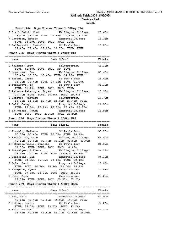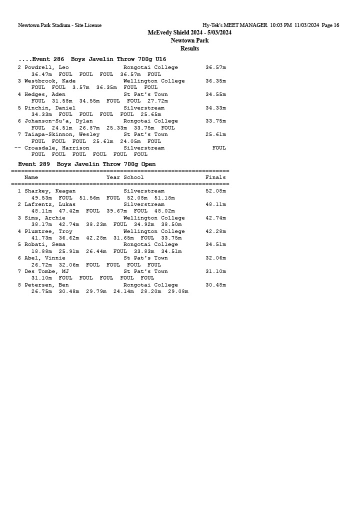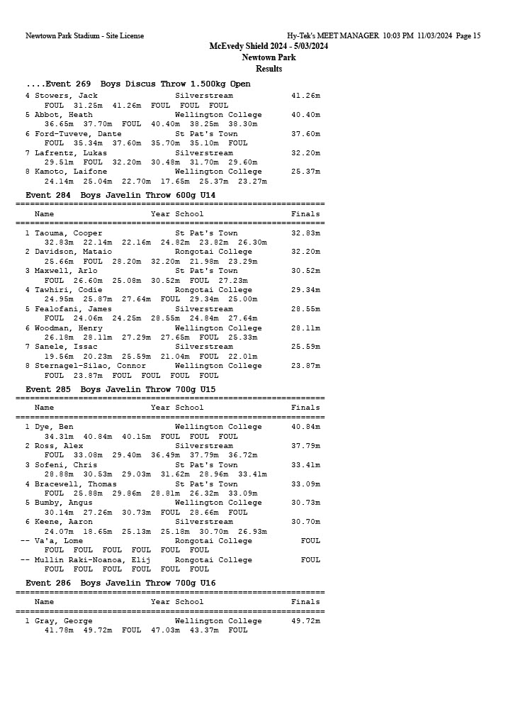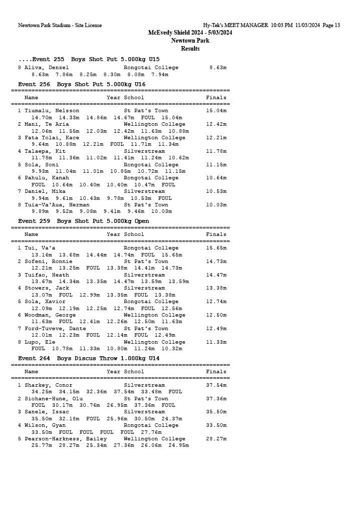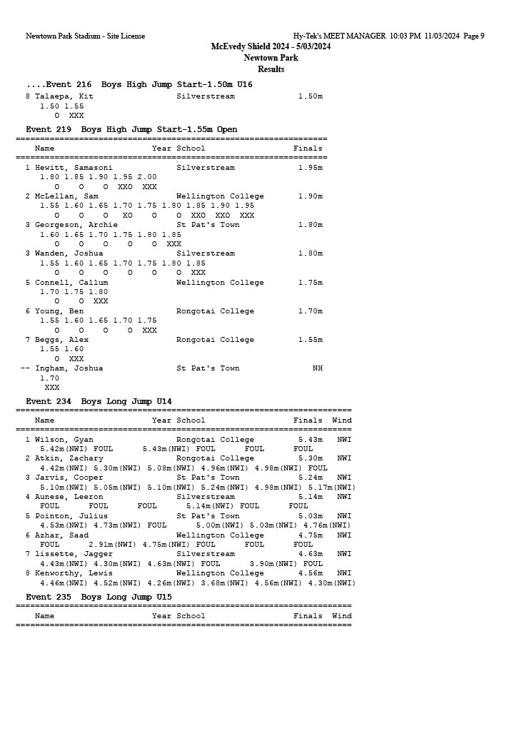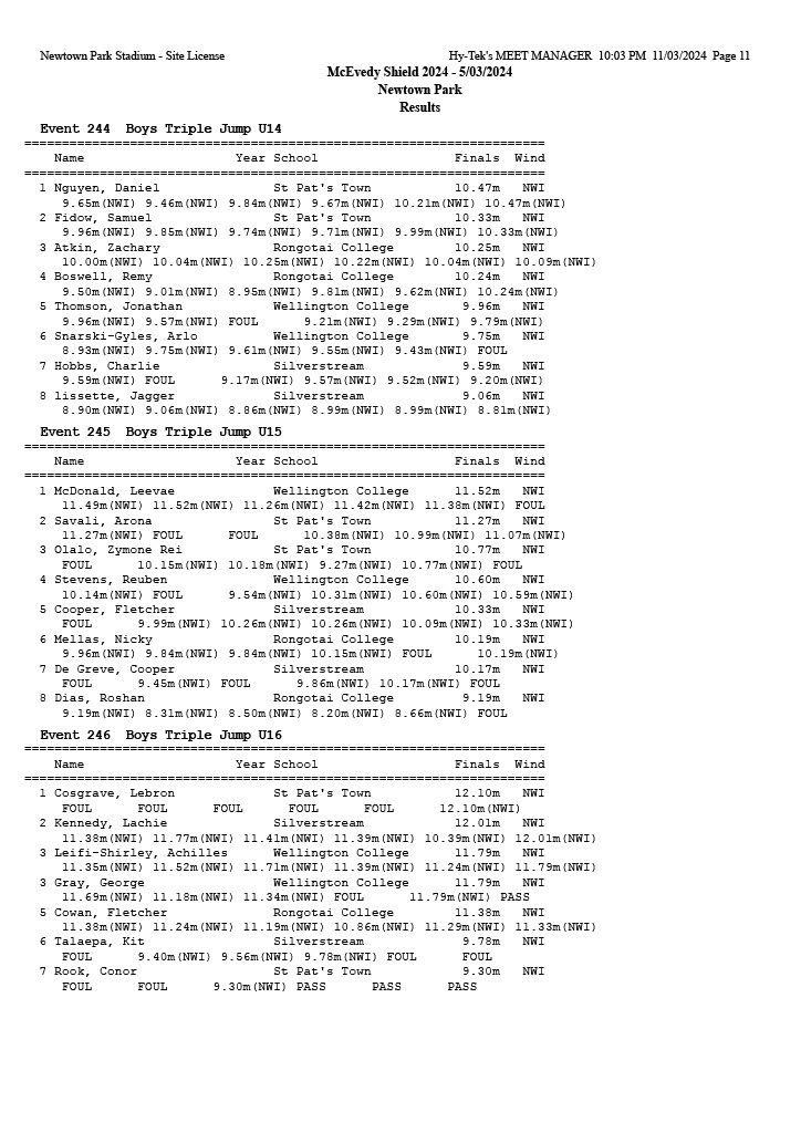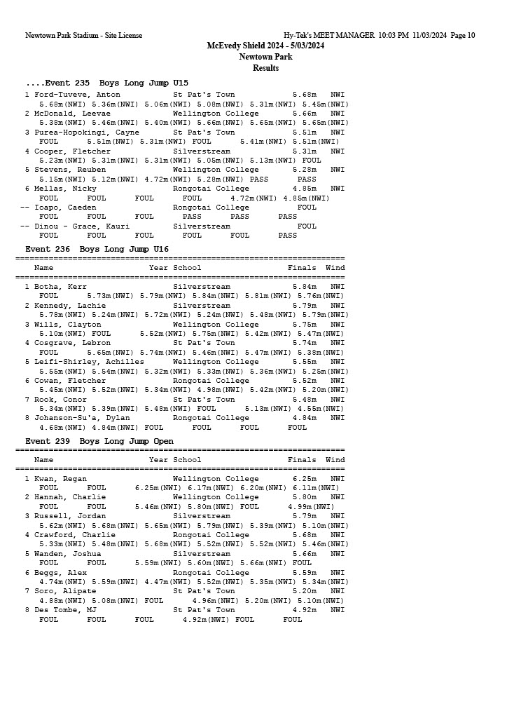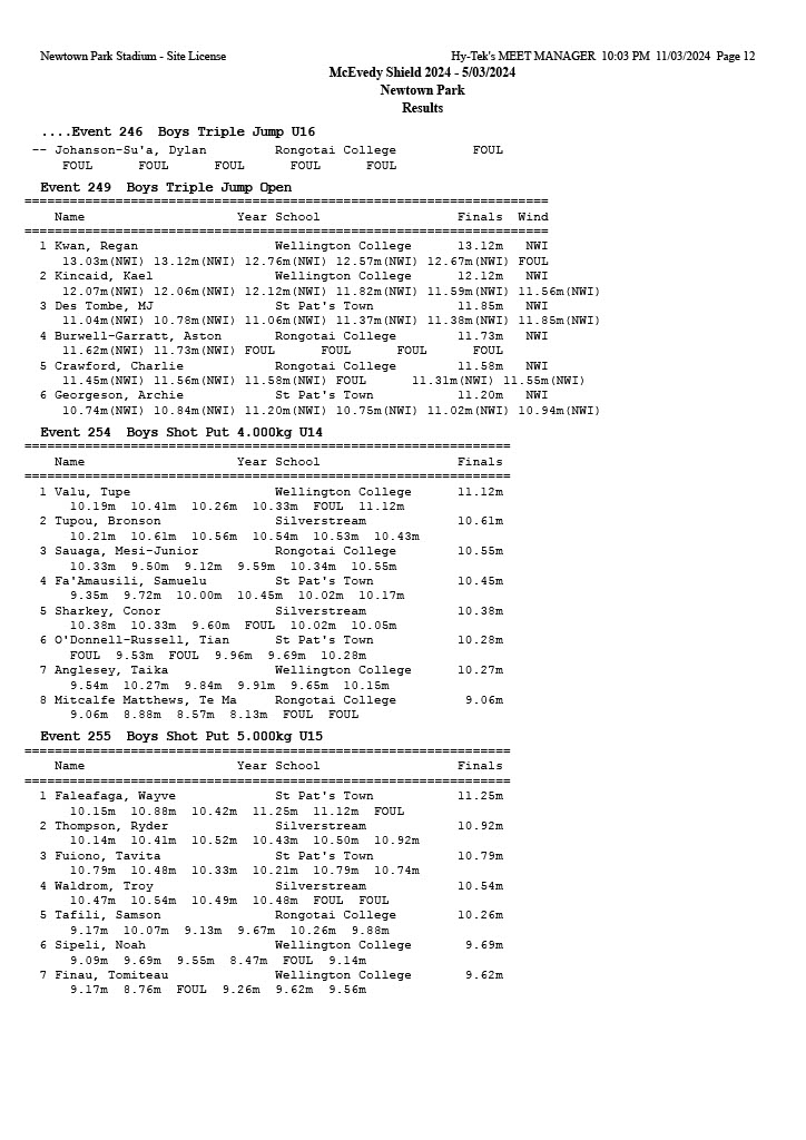 McEvedy Shield 2024 - Tuesday 5 March 2024 Newtown Park, Wellington | ||