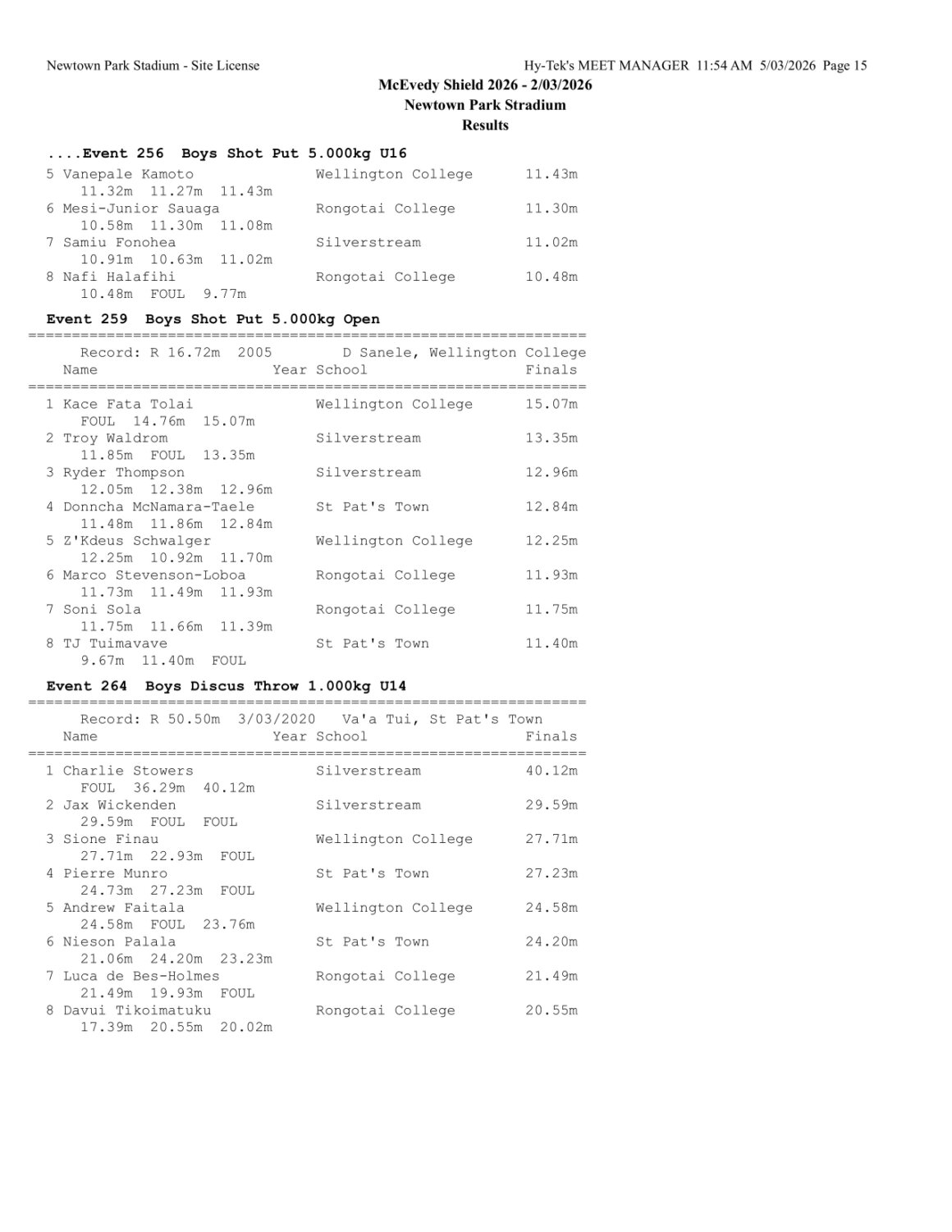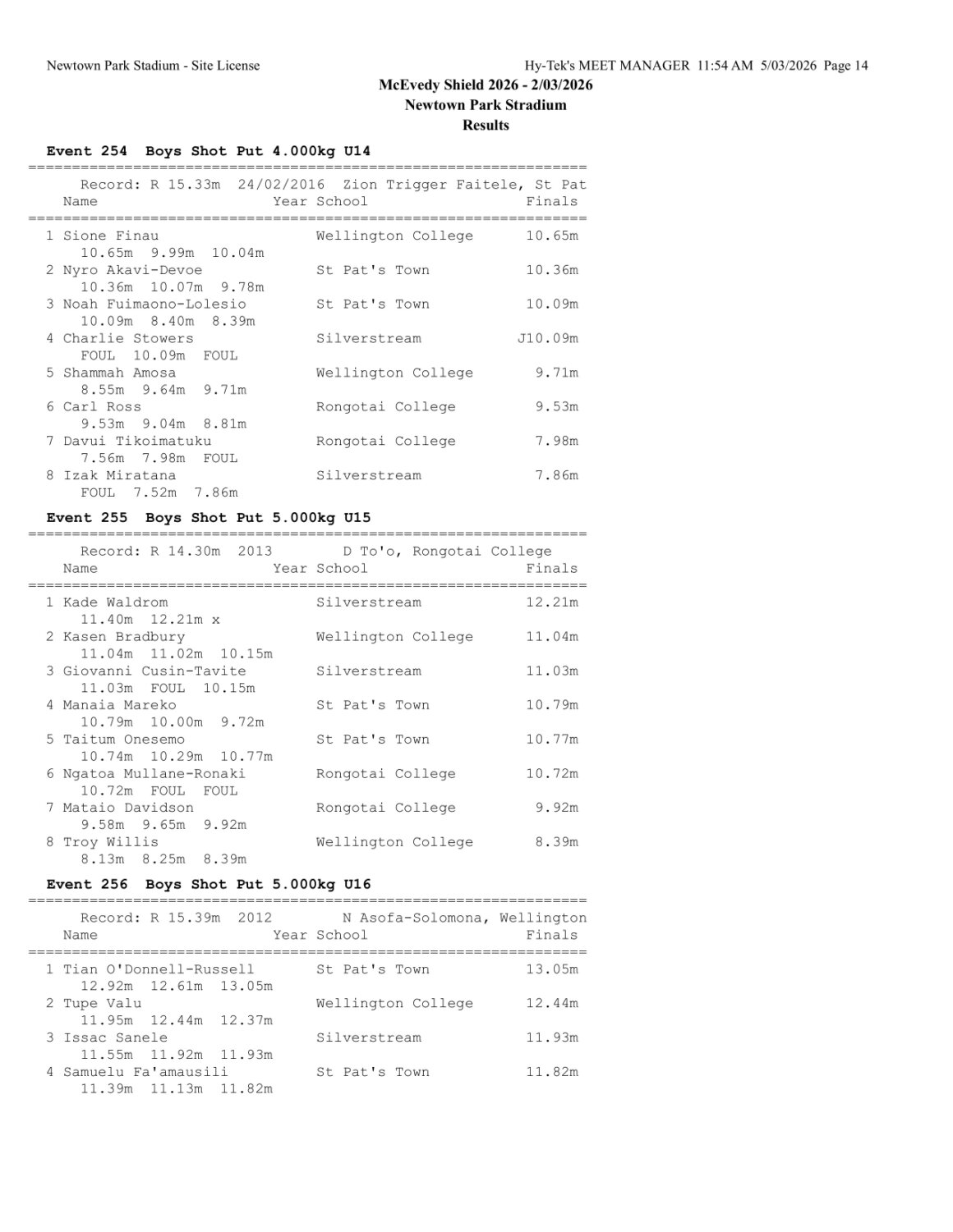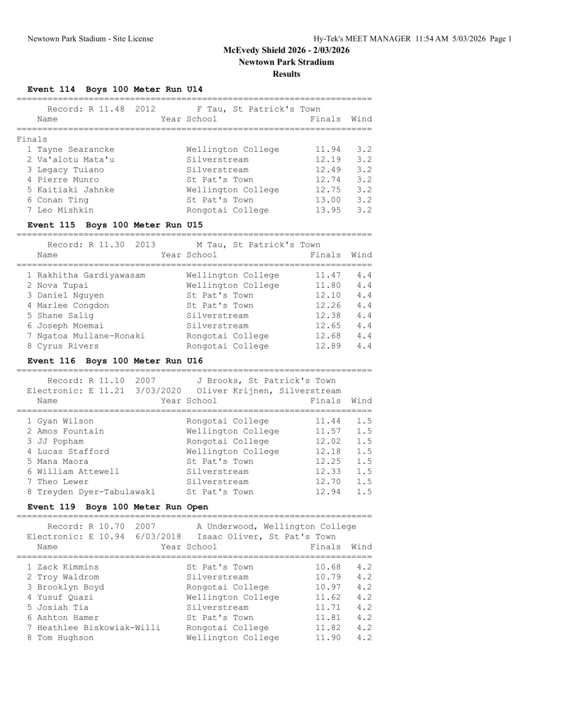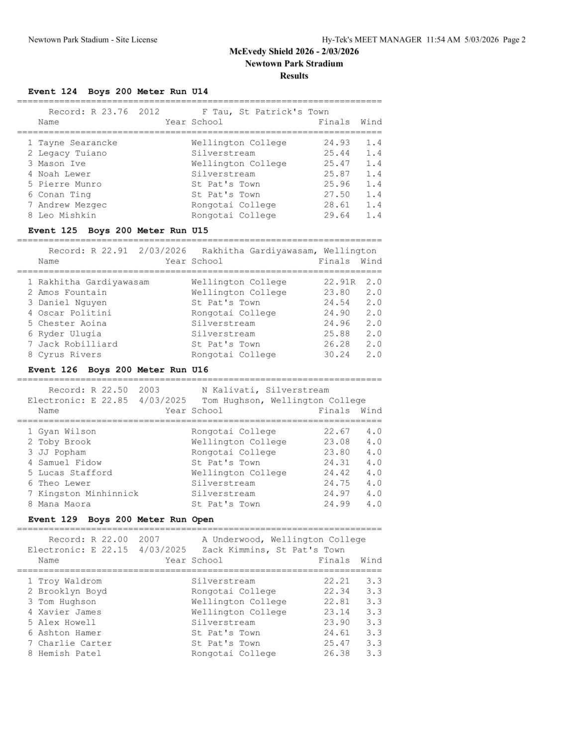 McEvedy Shield 2026 - Monday 2 March 2026 Newtown Park, Wellington | ||