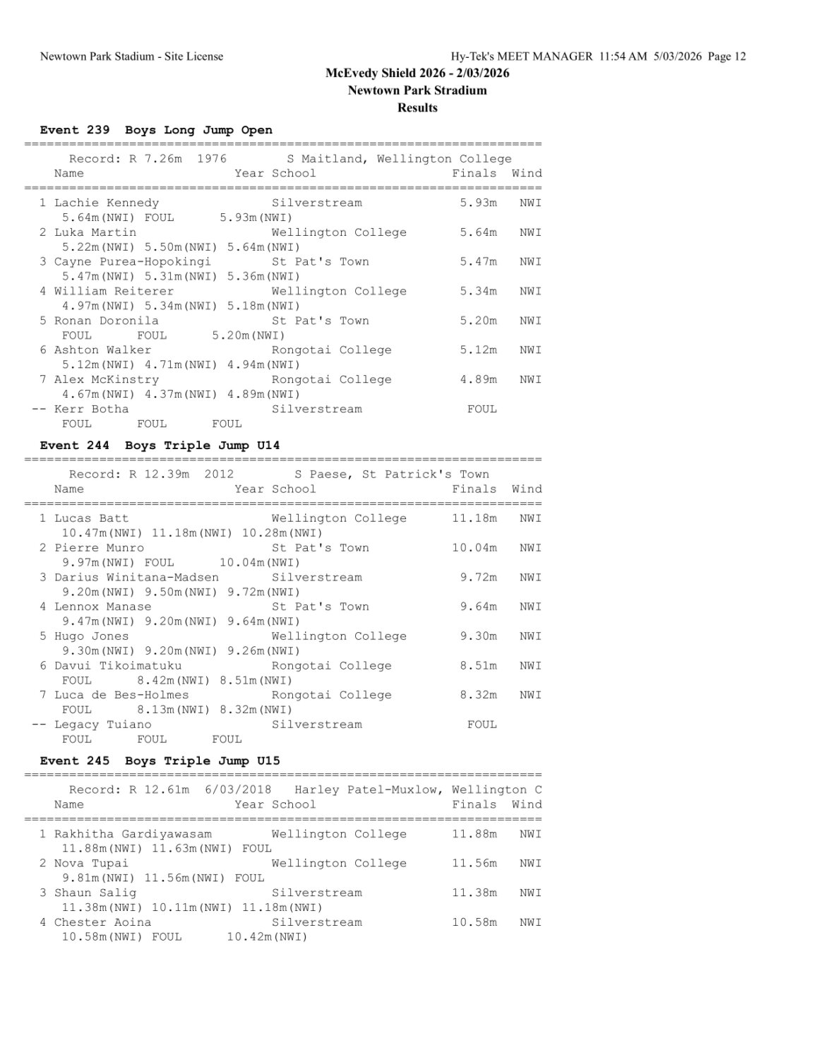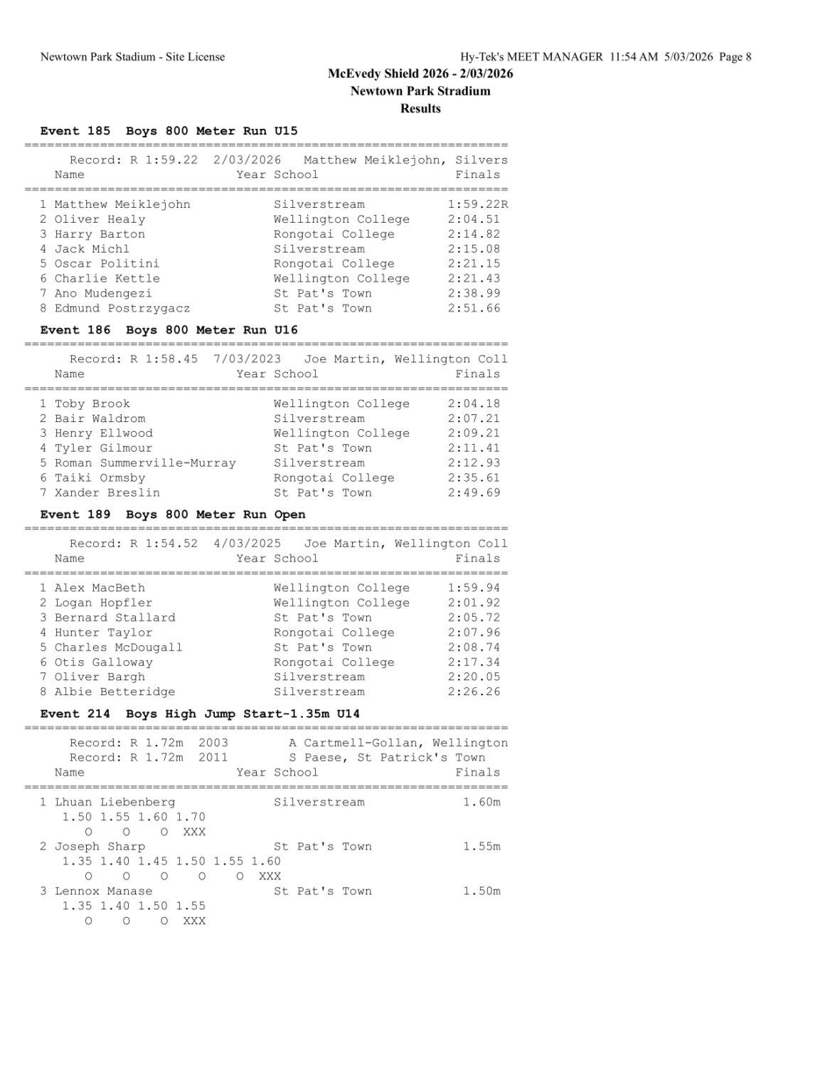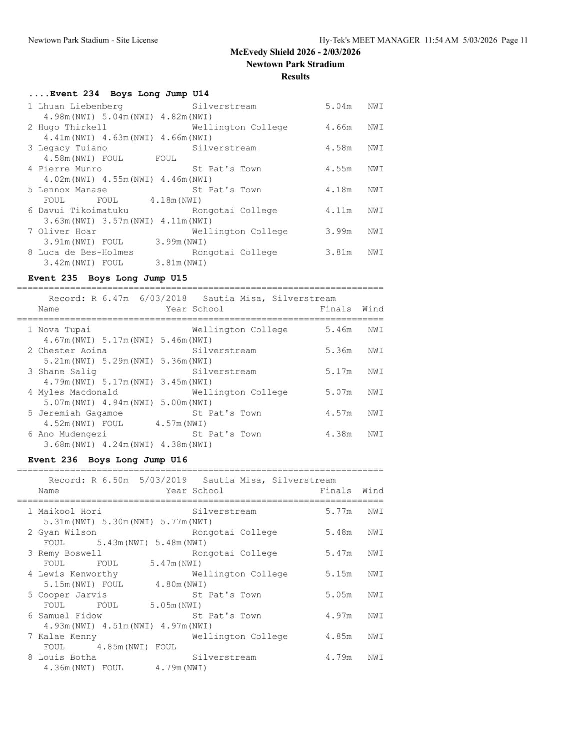 McEvedy Shield 2026 - Monday 2 March 2026 Newtown Park, Wellington | ||