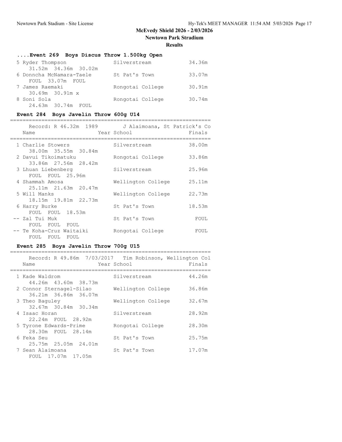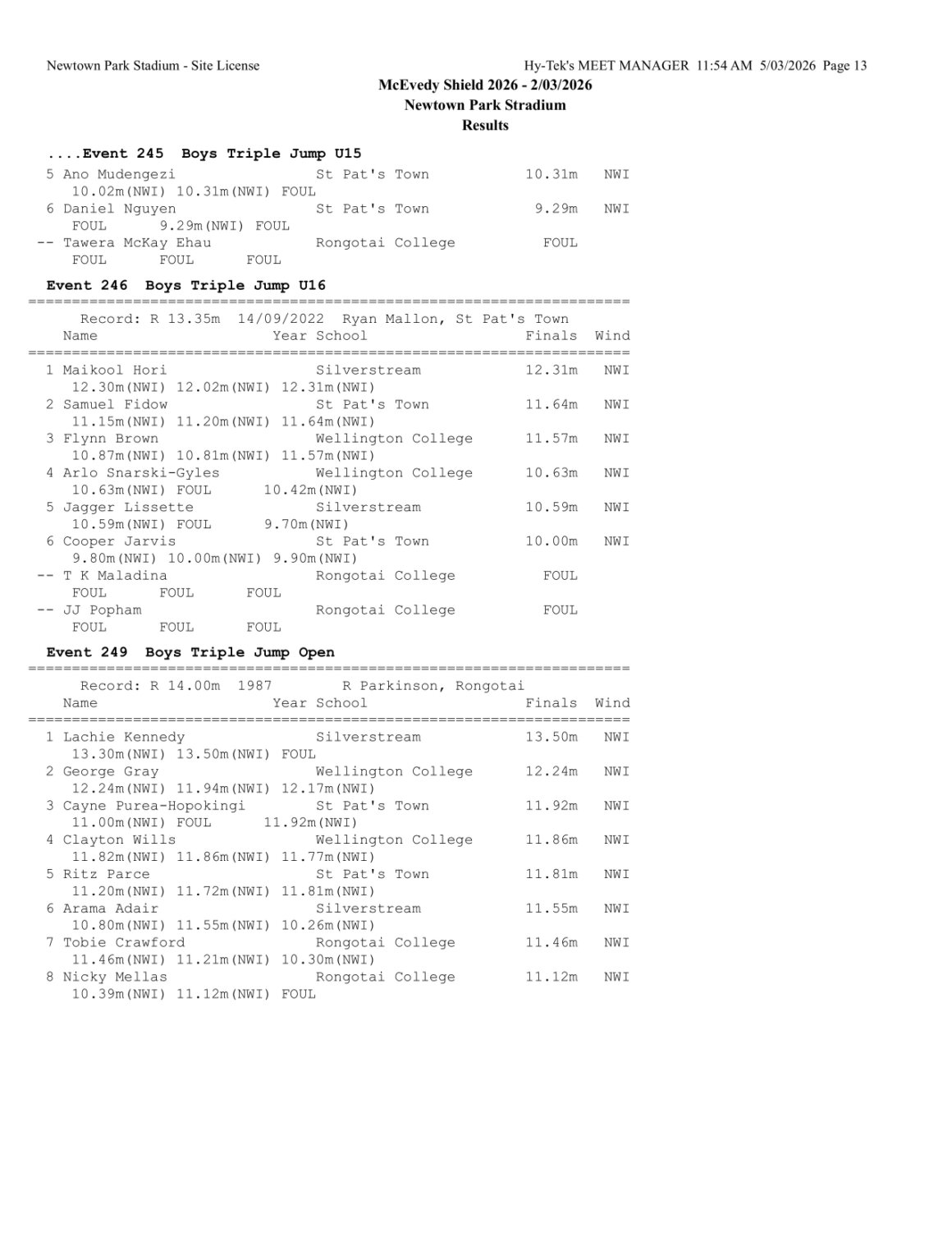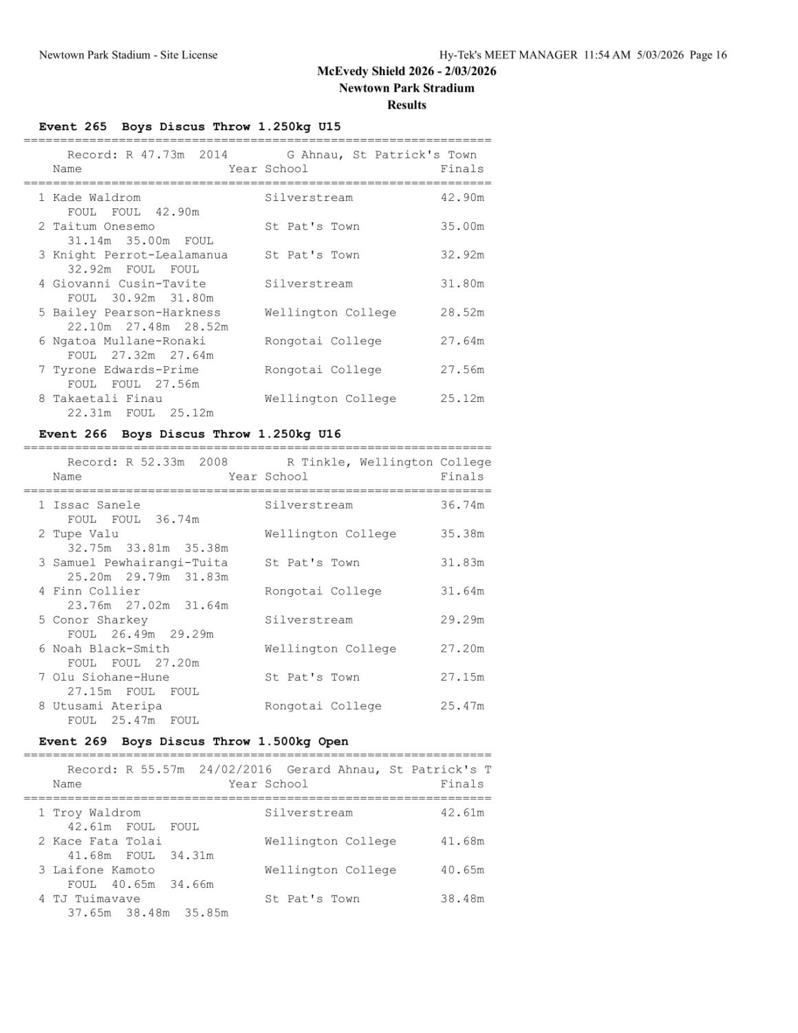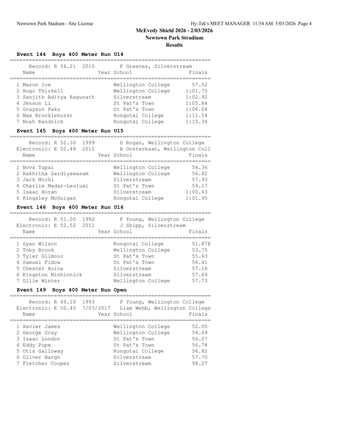 McEvedy Shield 2026 - Monday 2 March 2026 Newtown Park, Wellington | ||