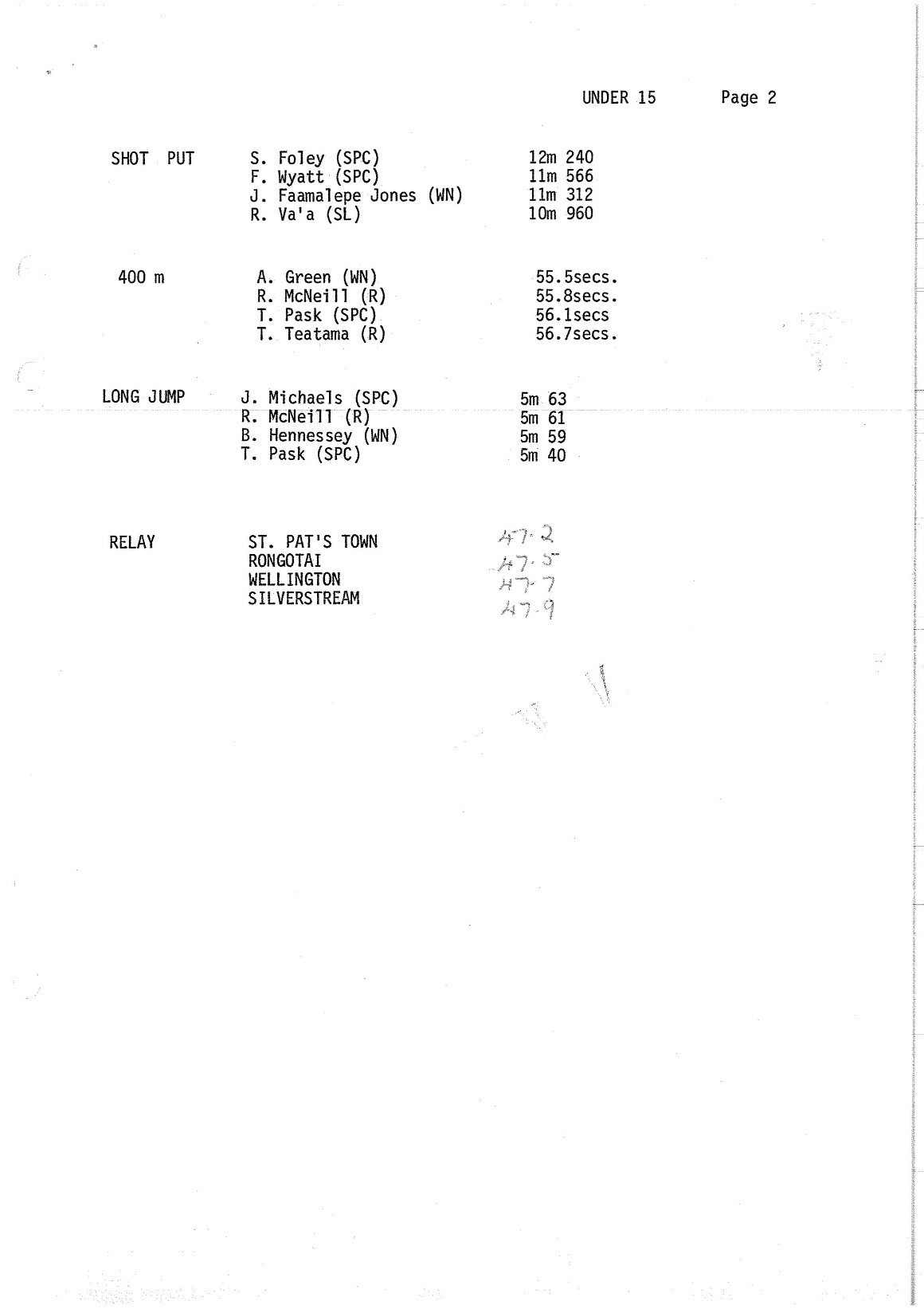 4 | Silverstream | 63.5 |